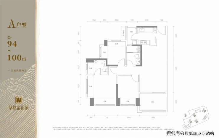 【建筑面积94-100㎡3房2卫】