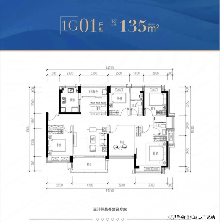 1G-01户型:约135㎡ 五房两厅两卫: