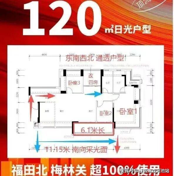 户型120平米3+1房 东南西北通透