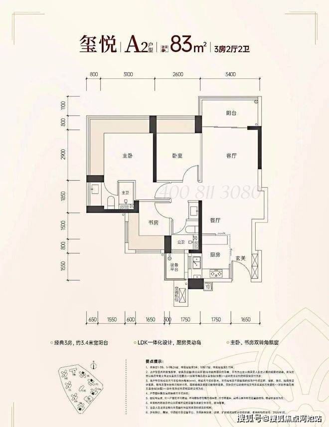 建面约83㎡的3房2厅2卫,首推96套,参考总价310万起,单价3.73万起。