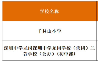 项目自身规划有6班制幼儿园,义务教育方面,根据2023年最新一期学区划分,本项目属于千林山小学(公办)及深圳中学龙岗深圳中学龙岗学校(集团)兰著学校(公办)(初中部)。