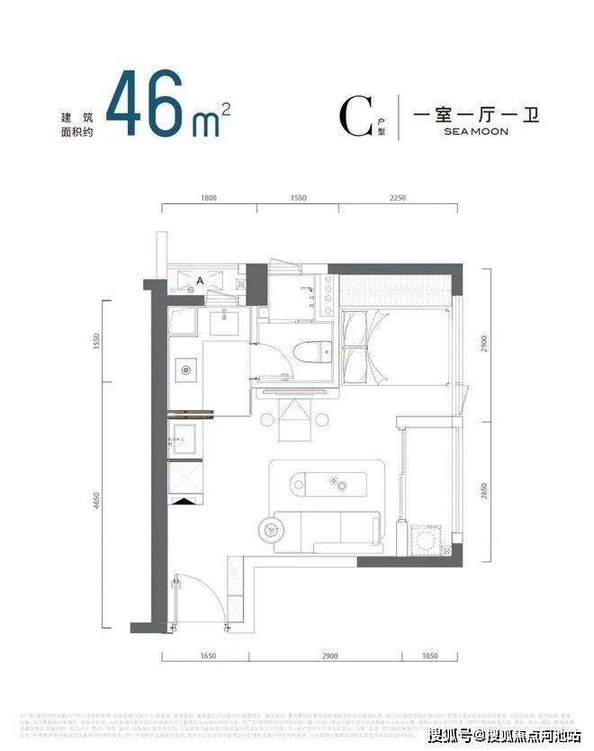 约46㎡:端头通燃气一房一厅 | 独立厨房 ,总价291万起
