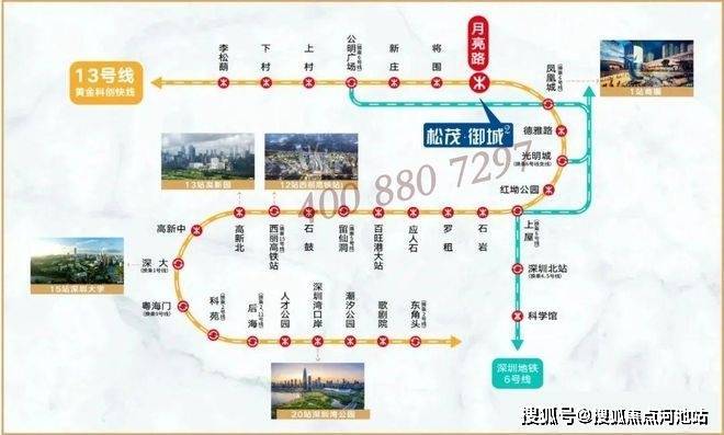 直线距离约400m到达地铁13号线月亮路站(建设中),1站凤凰城,9站到南山(约30分钟到达南山)。2025年将推动13号线二期(北延)建成通车(信息来源:宝安日报)。