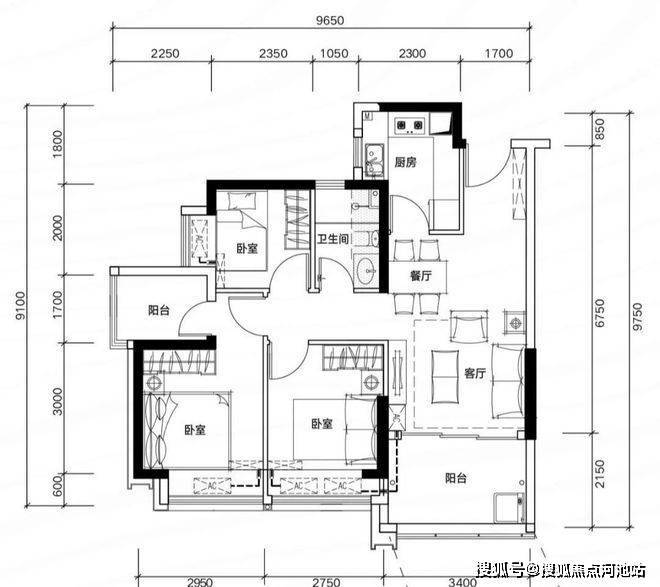 产品:高拓展+高使用率,81可做3房2卫还可做3+1房1卫。