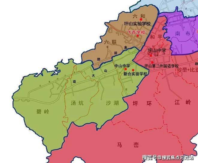 初中学区为坪山中学与中山中学组成的大学区(实际以教育局等相关部门公布为准)。