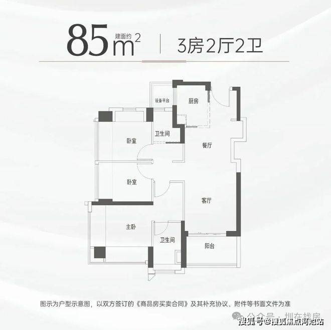 相较于75㎡户型,约85㎡三房在舒适维度上进行了全面升级。主卧配备转角全景凸窗,将晨光与河景最大化纳入私密领域。