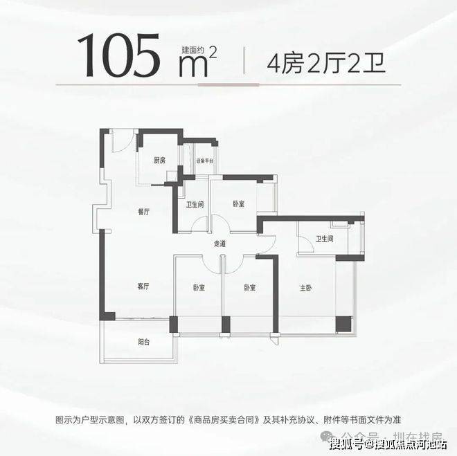 建面约105㎡ 四房户型,采用“南主北次”的独特布局,将客厅、主次卧等核心生活空间悉数置于南向,最大限度吸纳阳光与诗意河景。