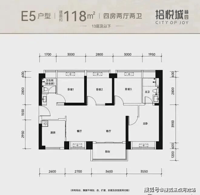 115平~118平全明采光户型,四卧室、厨房、两卫、客餐厅等均设计超大采光面,带来明亮通透的舒适居感,客餐厅以横厅布局,让家庭居住空间的视野范围和活动区域扩大,加强家庭成员之间的情感交流;不论是三代同堂的天伦之乐,亦或是四口之家的温馨时刻,皆能一步到位。