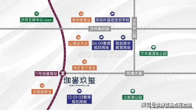 步行可达的是地铁11号线塘尾站,衡量地铁配套的价值,不能只看通勤距离,还得考虑线路串联的城市资源,11号线沿途站点都是城市地标级的综合配套,可实现6站到宝中,7站到前海,9站到深圳湾后海,11站到车公庙的快速轨道通行,可以说是“全城精华,一轨直达”。