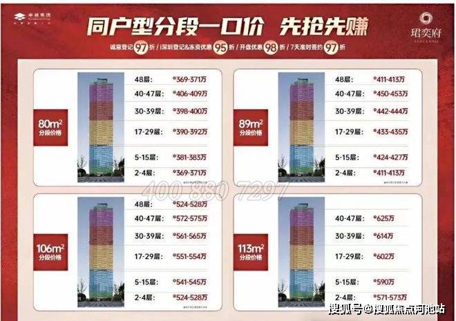 项目在售户型为80-113平3-4房单位,总价约360万起即可买3房!