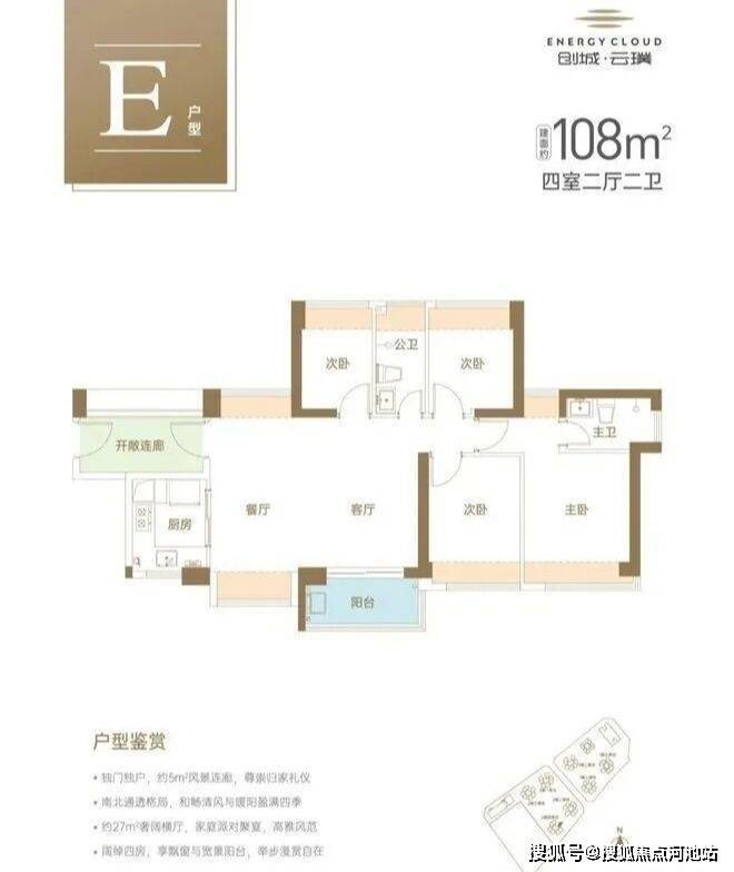 建面约108㎡南北通透4房2厅2卫,阔绰大横厅,演绎多样家庭生活场景,东南向户型,3面采光,生活洒满阳光。