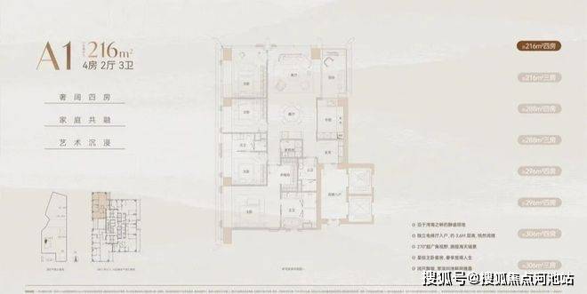 (一)T4中低区(3000-5200万):改善优选,性价比之王1. 216㎡四房三卫+家政间(A1户型)
