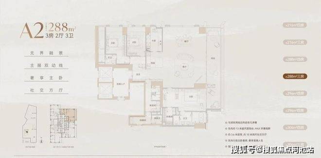 • 适配人群:预算3000-3500万,想抢占深圳湾圈层的首次改善家庭2. 288㎡四房三卫+保姆套间(A2户型)