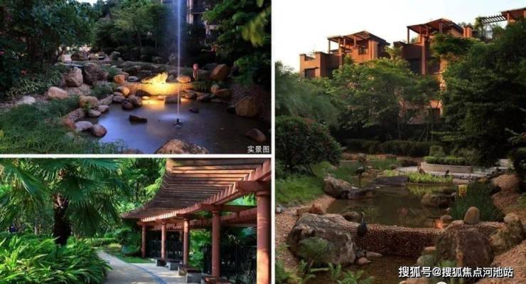 项目内部打造了一条沿着台地蜿蜒的溪流,该水系为市面罕见的活水溪流,贯穿整个社区园林,依据溪岸的曲直不同和地形变化,打造叠水、溪流、瀑布、水潭等多样特色水景,溪岸植物种类繁多,与水流互为风景,沿岸专门设置不同的亲水平台,营造自然灵动的栖心之境。