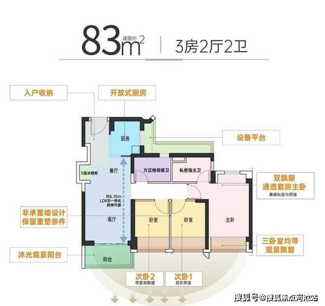 85㎡3房2卫:约322-365万,东南向景观房