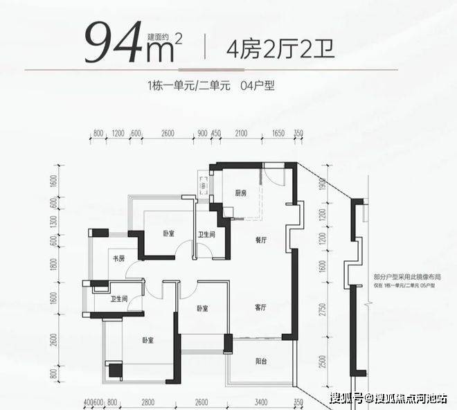 【户型面积】约75-85㎡3房2卫,约94-105㎡4房2卫