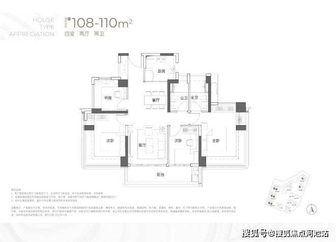 设计的是竖厅双龙抱珠格局,客厅3.5米开间,LDKB一体化,4个卧室分别做到了3.7米/3.4米/2.8米/2.6米的宽度,主卧加2个次卧270°全景飘窗,客厅连接次卧出6.1米长的大阳台,U型厨房,得房率约95-97%(包含赠送),西南或东南朝向。