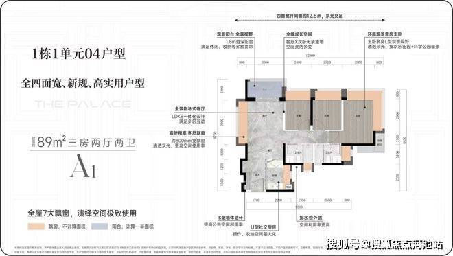 89㎡竖厅动静分区,客厅带3.9*0.8米飘窗,原本3.3米客厅开间秒变4.1米,深圳首创。