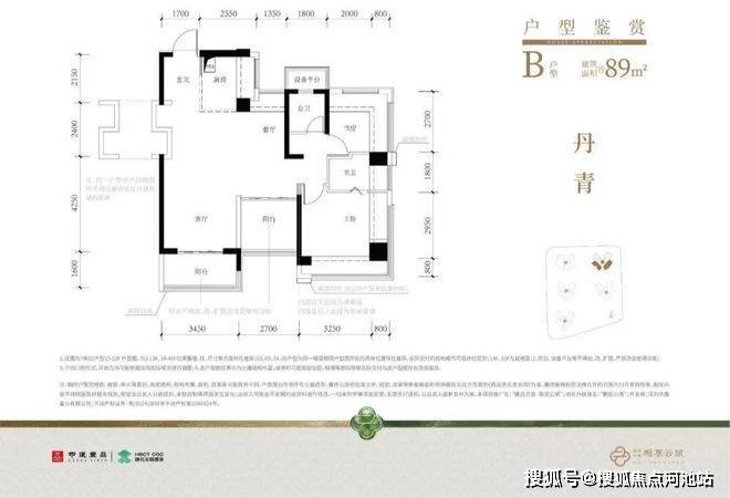 89㎡的4房2厅2卫,设计的是经典竖厅格局,进门入户玄关,客厅3.45米开间,动静分区,三开间朝南,分别做到了主卧14.54㎡/次卧7.96㎡/次卧7.56㎡/次卧5.8m²(包含墙体飘窗),主卧+1个次卧270°飘窗,U型厨房,公卫三段式干湿分离,得房率约102.2%(包含赠送),阳台5.52m²西南或东南朝向。飘窗赠送面积13.17m²+阳台赠送面积6.61m²+设备平台1.8m²=实际赠送面积约21.58m²。