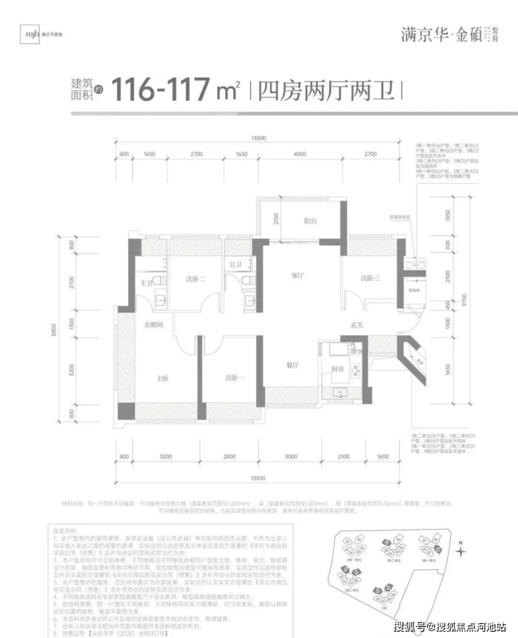 满京华金硕悦府户型与2栋1单元的户型是一样的,因为是超高层公摊稍大,面积对比2栋1单元多了4-6㎡。备案均价约4.6万/㎡,开盘约91折,折后均价4.2万/㎡,总价约344万-713万。