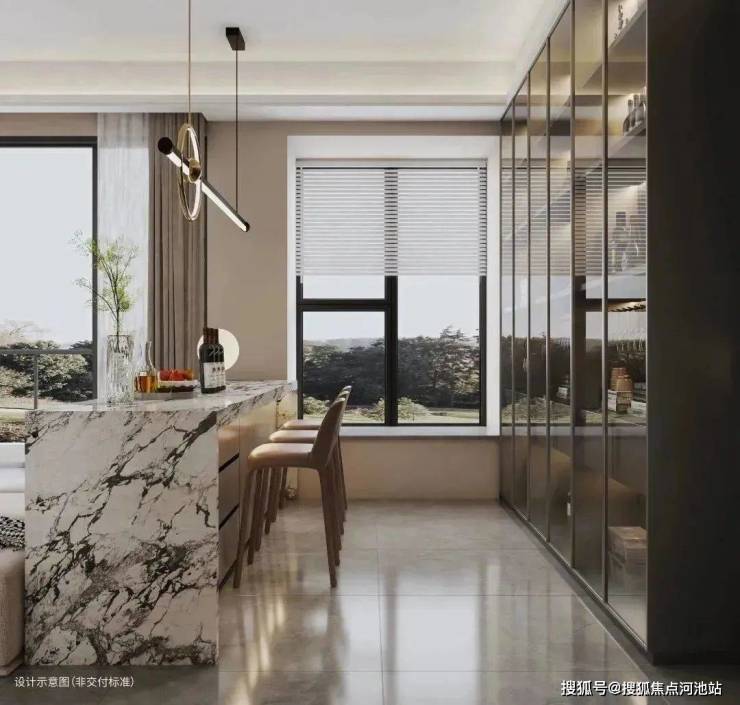 在日常生活中,小两口坐在吧台边上品尝美酒,欣赏梧桐山的风景,享受青年生活的精致感。