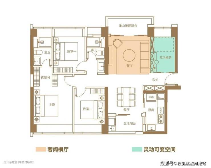 但是鹏瑞·尚府打造的118㎡户型不仅是宽敞三房,还能有个大横厅,设置了多功能的空间,可以随着自己的喜好变换设计,满足全龄段需求。