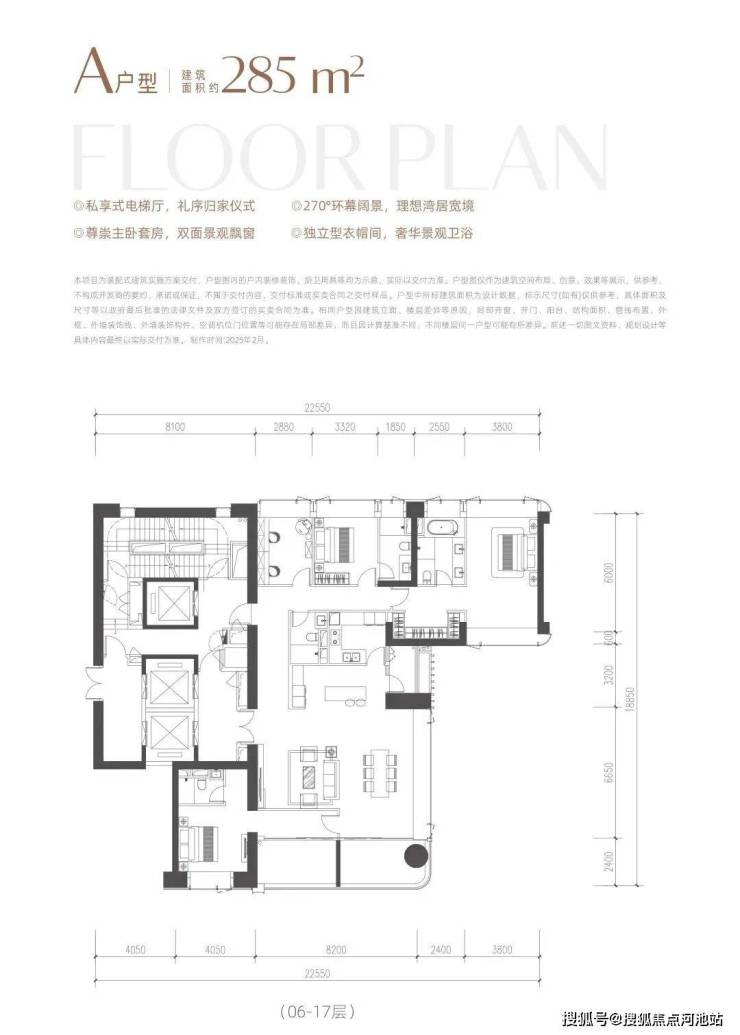 今年4月18日取证、加推245㎡和285㎡共77套。3梯2户,专梯入户、楼王单位。价格对比上批大户型(10.3万/平)涨了1.2万/平左右!备案均价11.55万/平,总价约2440万起!