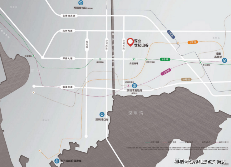 陆路:紧邻【沙河东路】与深圳湾总部基地紧密相连,自北向南串联起【京港澳高速】、【北环大道】、【深南大道】、【滨海大道】,纵向由【沙河西路】、【科苑路】共同构成四横三纵的一体快速路网;可直抵前海、宝中、福田、罗湖等深圳其他城市核心区。