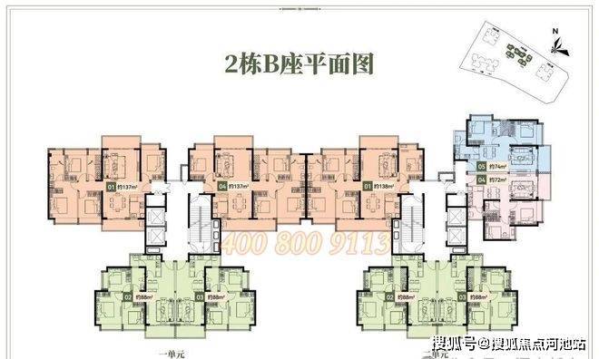 2栋B座一单元01、04户型、2栋B座二单元01户型:面积约为137-138㎡的4房2厅2卫;