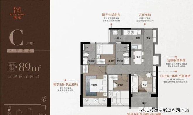 89平三房,总价578万起,有ABCDE户型,174套