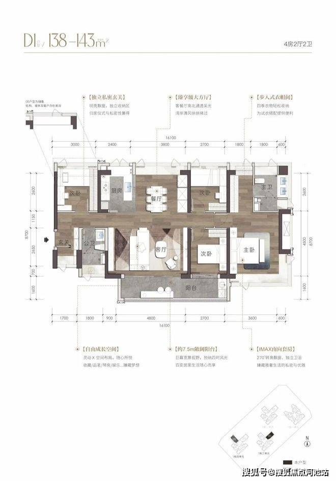 建筑面积约138-143㎡户型-4+1房2卫