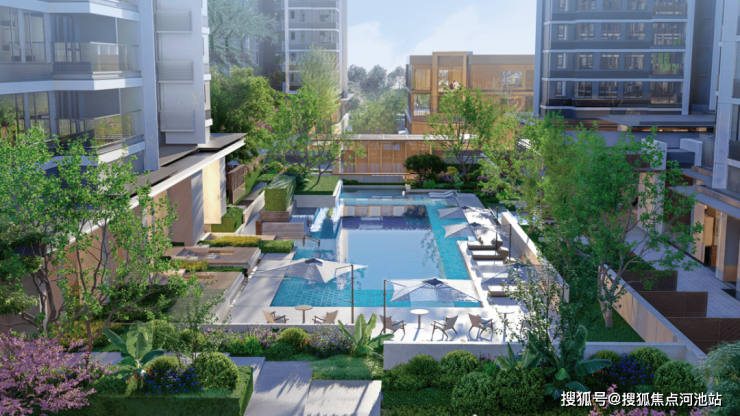 2栋紧连社区公共空间,下楼即享全龄邻里生活。南侧紧邻三层立体都市景观—约2000㎡廊下烟火商街、约1000㎡中央车站、约1000㎡抬高式檐上浮岛花园露台。闲暇时分,或至露台花园观景,或沿流水庭院漫步,四时美景为伴,悦享诗意日常。
