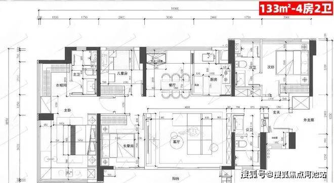 133㎡的4房2厅2卫,设计的是竖厅南北通透格局,进门入户玄关,客厅5.4米开间,餐客厅分离设计,客厅连接次卧出12.3m²的观景大阳台,L型中式+岛台灵动式厨房,公卫三段式干湿分离,得房率约78.27%(不含赠送),阳台主朝东南或西南向。靓点:超大客餐厅南北对流+8.2米长超大观景南向阳台,超大主卧+270°无柱转角飘窗
