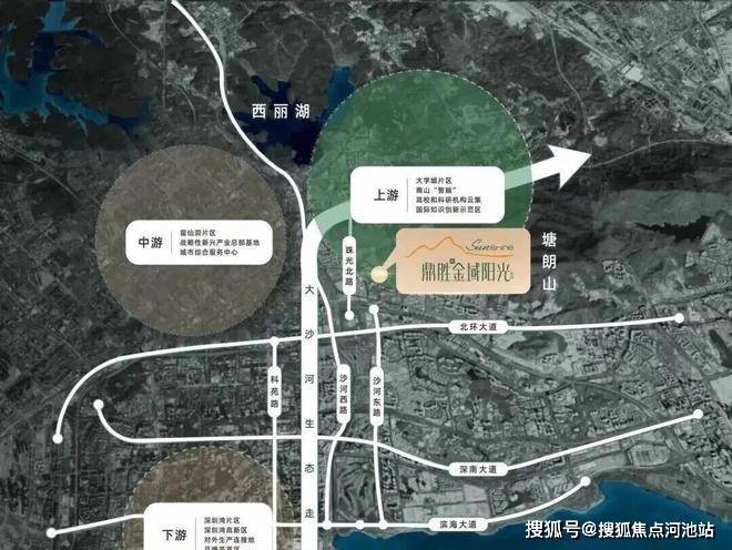 鼎胜金域阳光家园项目南依塘朗山,北面西丽湖,西临大沙河,推窗观山,临街瞰河,不仅营造了豪宅级居住体验,更是南山绝佳风水之地。