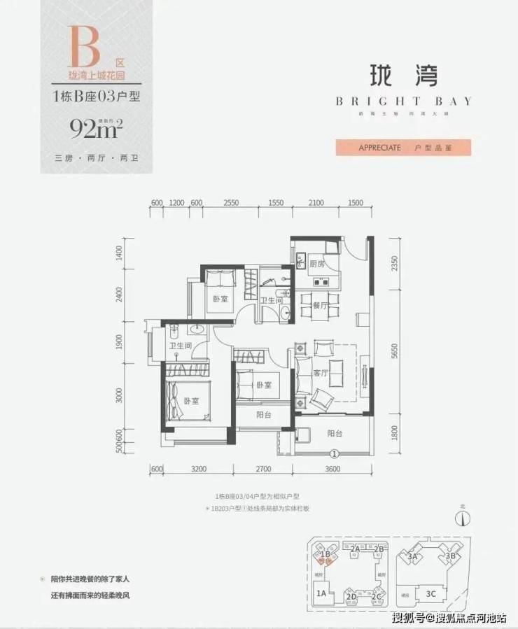 梯户比:1栋B座3梯6户;2栋B座2梯3户;