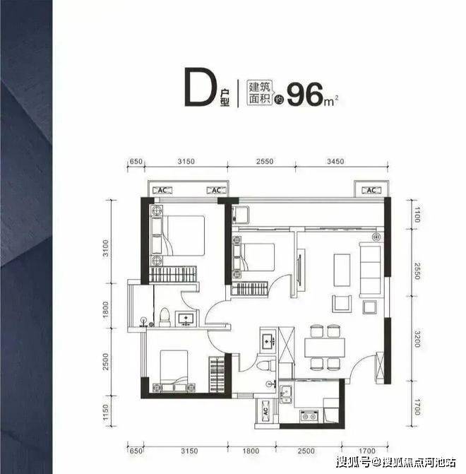 96㎡ 三房 约 210~220 万,首付低至63万