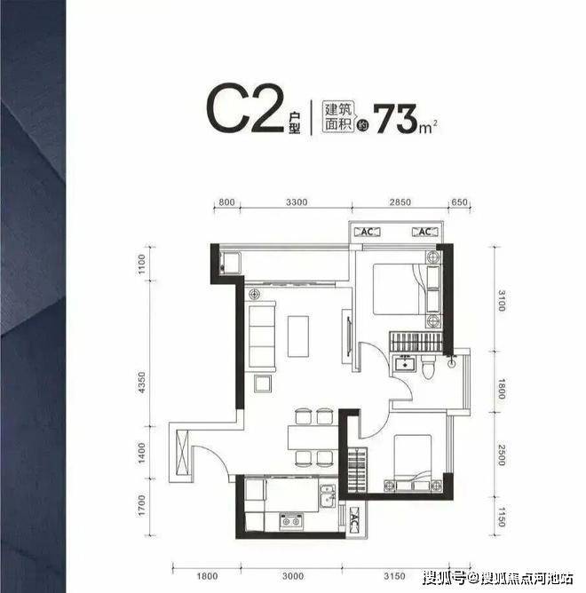 73~76㎡ 两房 约 158-172 万,首付低至48万