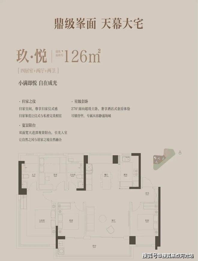 126㎡四房两卫,折后总价区间599-631万,单价区间4.74-4.98万/㎡;