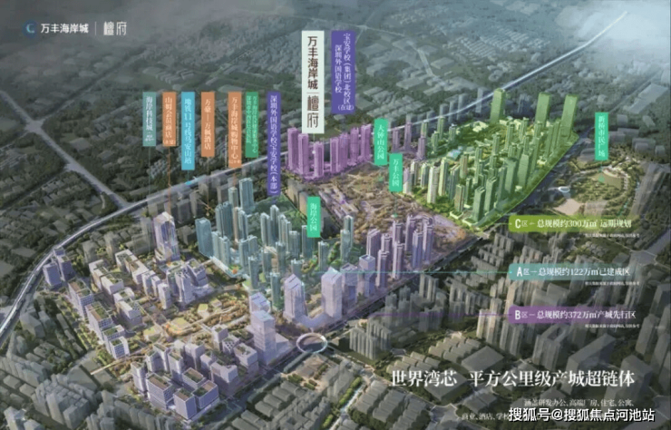万丰区域城市更新项目分为A/B/C三大开发区域,规划建筑面积预计超500万㎡,由世界上最大的建筑设计公司之一的美国CRTKL公司本部进行设计。最终将形成约2平方公里的超级产城综合体,几乎包罗全业态的城中之城。