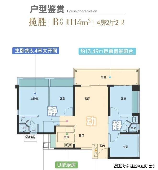 采用经典的双龙抱珠格局,客餐厅+阳台一体化设计,动静分区明确。