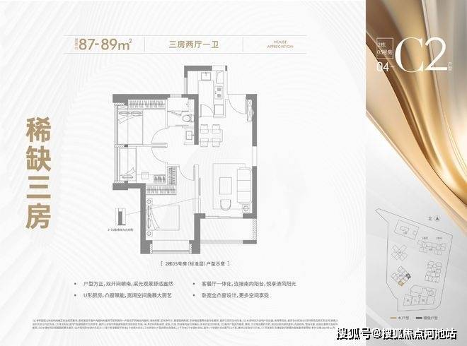 87-89㎡(三房一卫)稀缺精致3房户型,家庭生活一步到位!