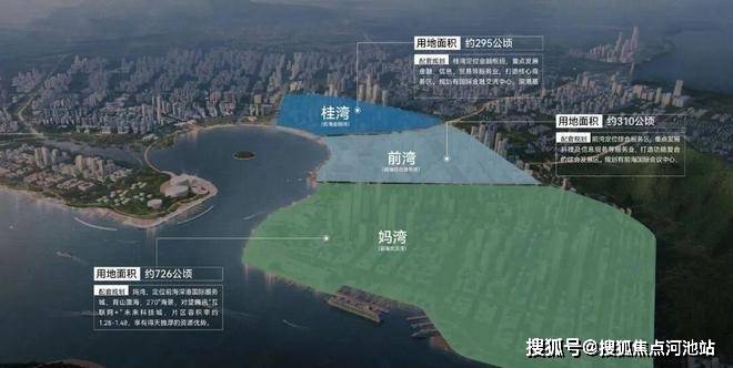 ①妈湾,三湾中体量最大的,比桂湾(295公顷)和前湾(310公顷)的总和还要多出20%,容积率仅为1.28-1.48,留白净地多;