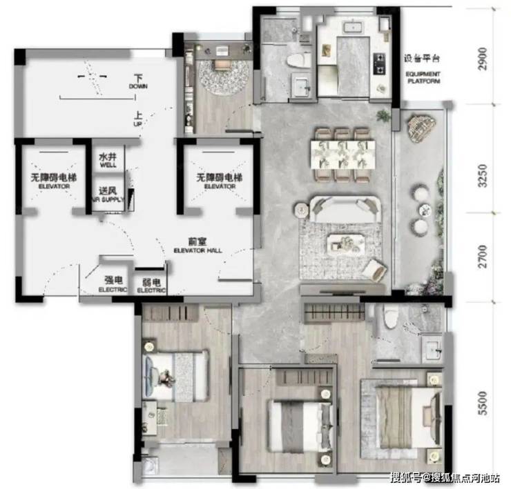 ◎梯户比:4梯5户,专梯入户(每户都有独立电梯厅)