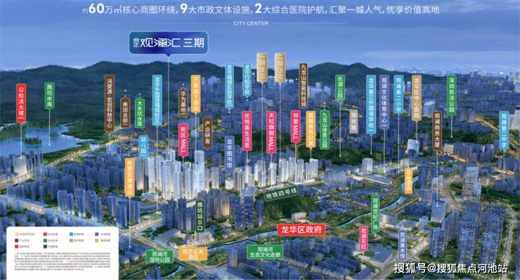 观澜,龙华行政中心,与红山商业中心、老政商贸中心形成龙华三大中心;