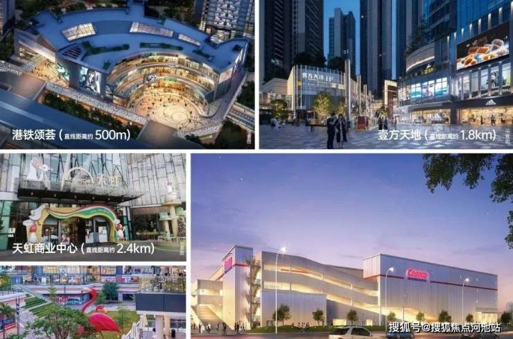 直线距离约500米:港铁颂荟TIA MALL。3公里范围内:壹方天地、华南首家COSTCO、天虹商业中心、红山6979、龙华海岸城(规划中)、华润上塘万象系商业(规划中)、中洲商业中心(规划中)等全系缤纷商业。