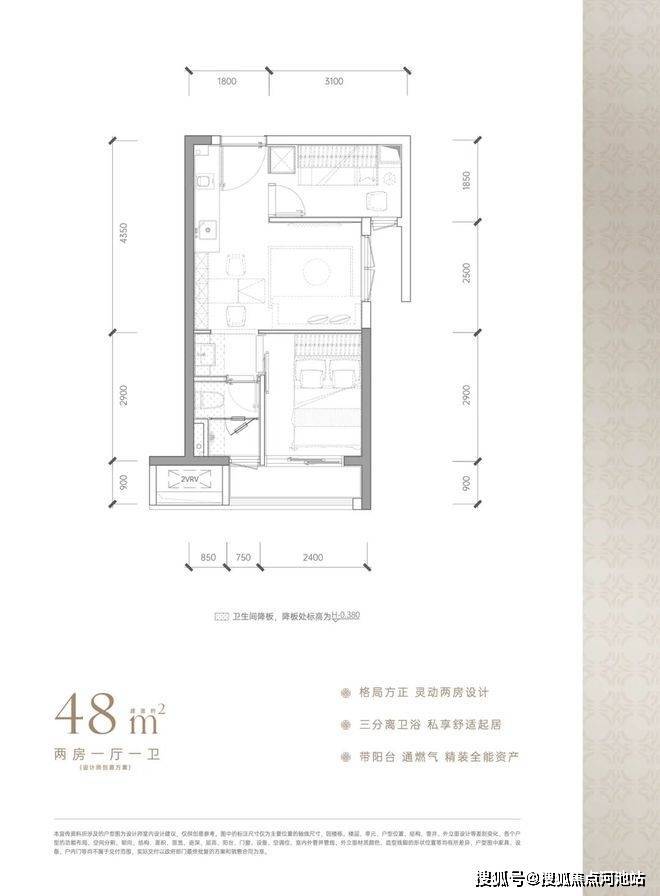 48㎡小2房租6500-7000元