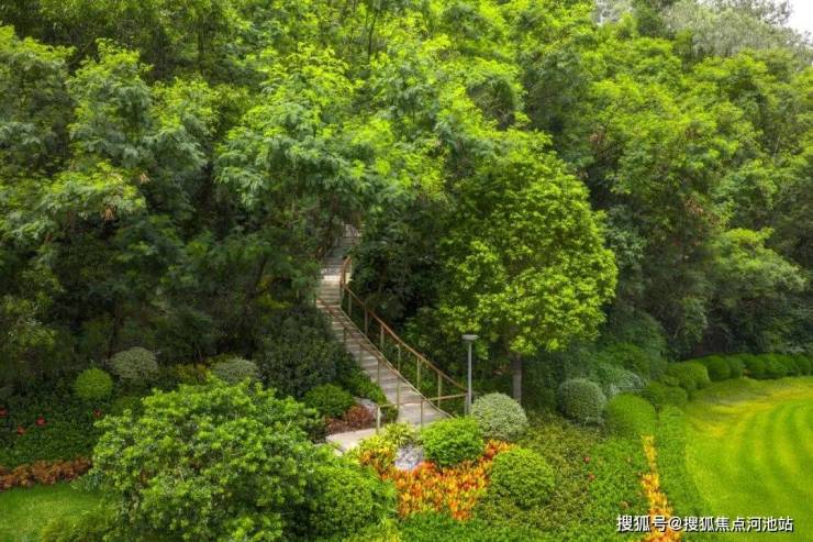 项目以周边的原生山体作为生态核心,倚借约88万㎡凤凰山国家矿山公园及约300万㎡平湖生态园的天然绿肺,打造约1200米登山步道,步道采用防滑花岗岩与透水混凝土路基,以科学坡度融入山体,既保障行走安全,又最大限度降低对原生态的影响。