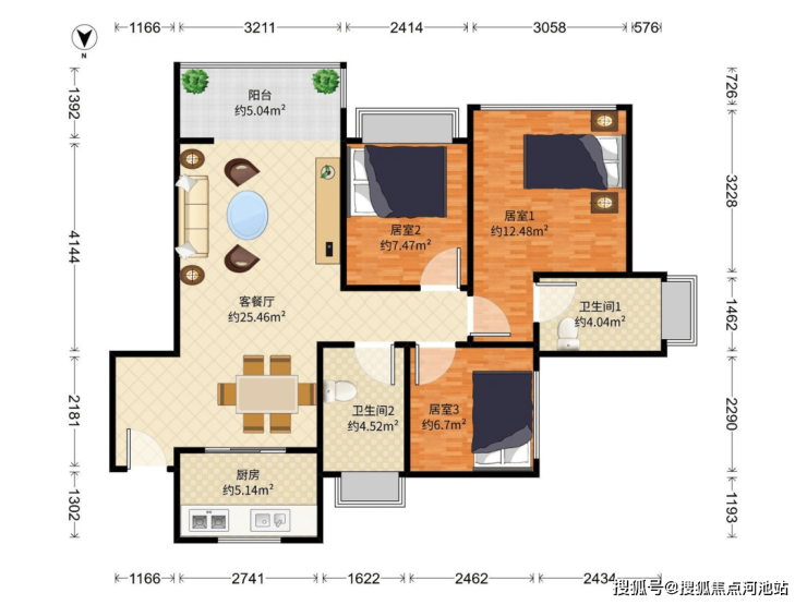 竖厅动静分区设计,南北通透,3面采光,3开间朝南,主卧带全景大飘窗。