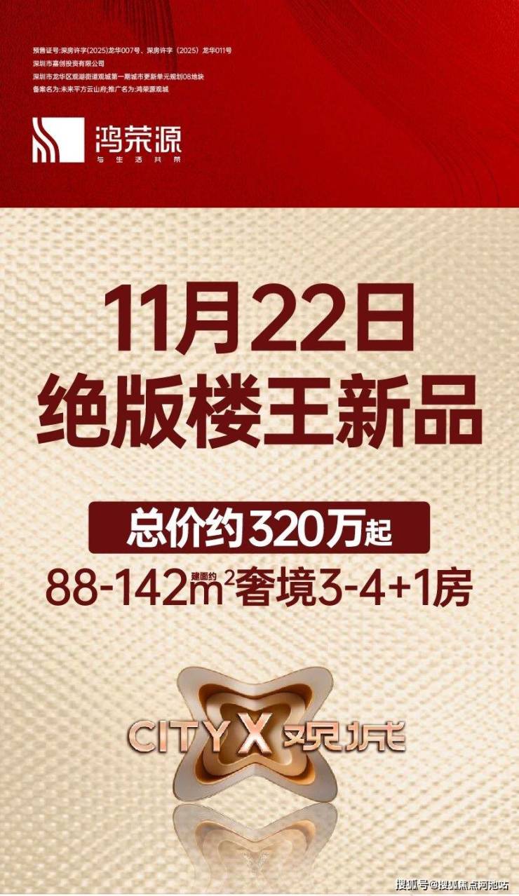 11月22日,鸿荣源观城,绝版楼王总价320万起,新品加推!