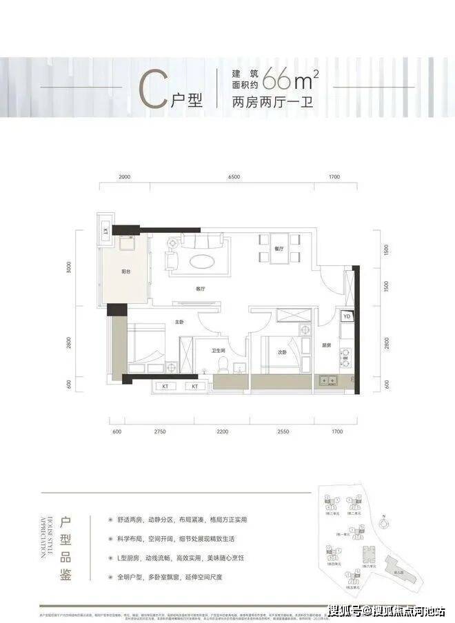66㎡的2房2厅1卫,折后总价约140万/套起,折后单价约2.15万/㎡。